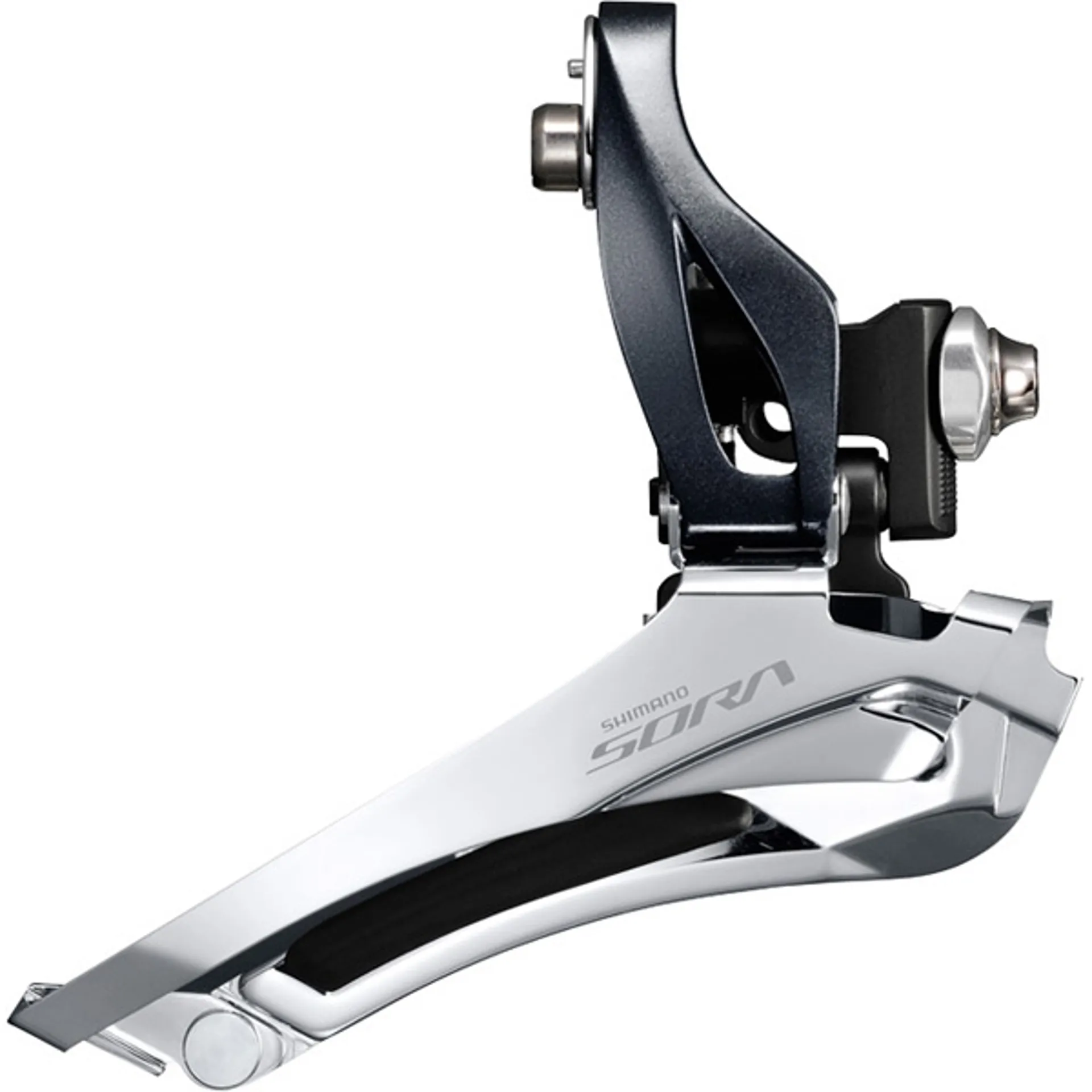 9-speed compatible Sora double front derailleur delivers great value to sport-level road riders.